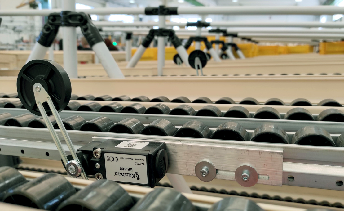Per facilitare il reintegro delle scorte di magazzino, Fasthink ha realizzato il sistema e-Kanban in grado di rilevare e comunicare l’informazione dei mancanti al sistema informatico in modo automatico attraverso un ricetrasmettitore con tecnologia LoRa. Il design di e-Kanban Smart Sensor è simile a quello di uno switch di fine corsa per utilizzo industriale. Facilmente installabile, grazie alla comunicazione wireless non necessita di complesse e costose operazioni di cablaggio. Viene montato facilmente sulle rulliere a gravità dove sono collocati i contenitori destinati al prelievo delle scorte di materiale per la preparazione di kit per la produzione.
